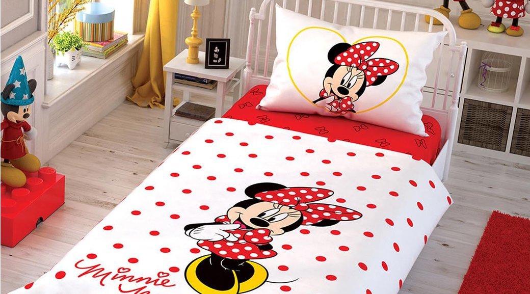 Taç disney minnie mickey çek canlandır çift kişilik nevresim takımı.